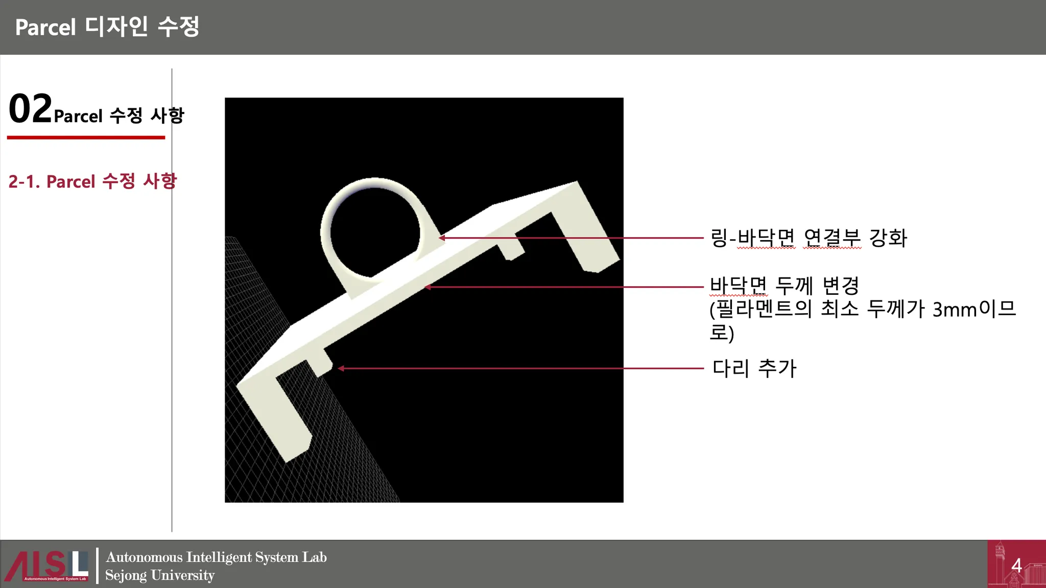 드론 하단에 부착되는 그리퍼 CAD 도안 중 일부